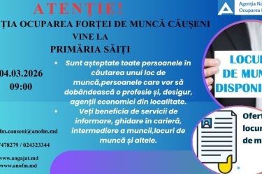 Primăria satului Săiți r-nul Căușeni aduce la cunoștință publicului faptul că în baza Deciziei Consiliului Sătesc Săiți nr. 2/12 din 12.03.2026, se organizează consultări publice pe marginea următoarelor proiecte de decizie: Cu privire la aprobarea Regulamentului privind folosința și protecția obiectelor regnului vegetal; Cu privire […]