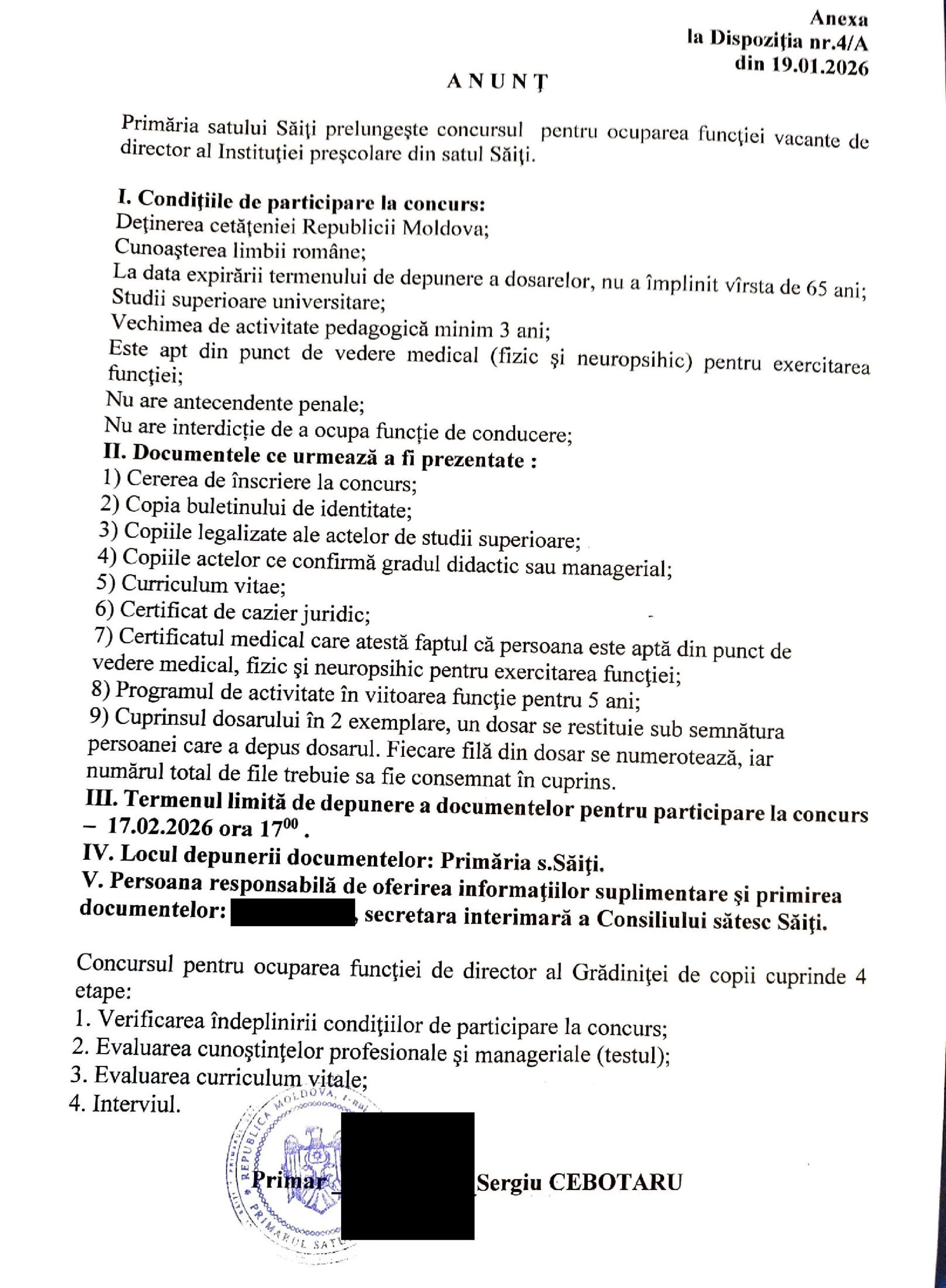 ANUNȚ Concurs pentru ocuparea funcţiei de director la instituția preşcolară